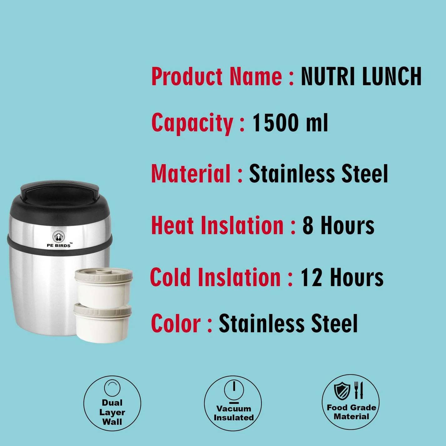 PE BIRDS has wide range of Nutri lunch Vacuum Lunch Box.