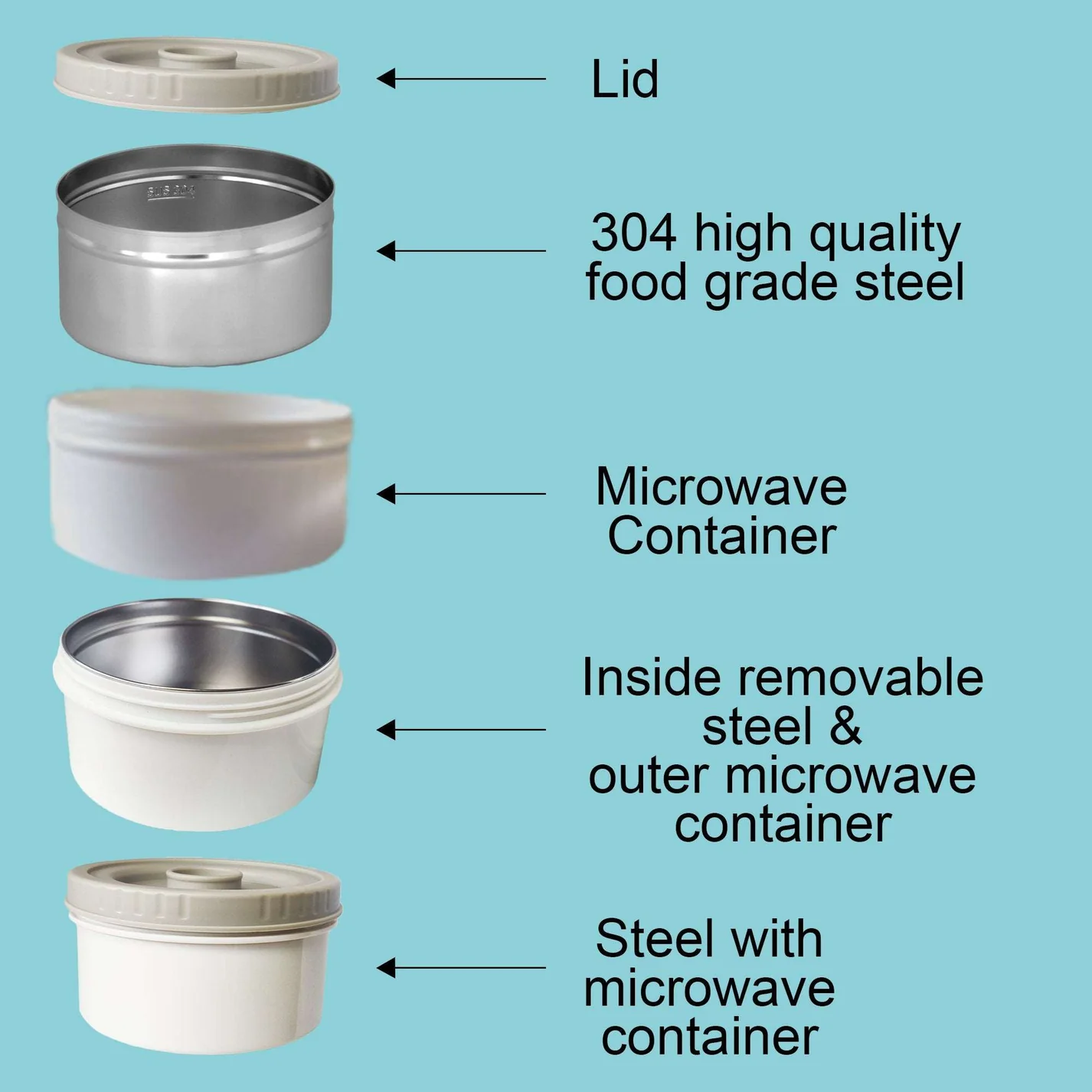 | Double wall stainless steel with vacuum insulated Keeps hot and cold for longer time The handle is movable The close / open vent is for easy open the cover when high air pressure inside 100% leak Proof, Food grade stainless steel |